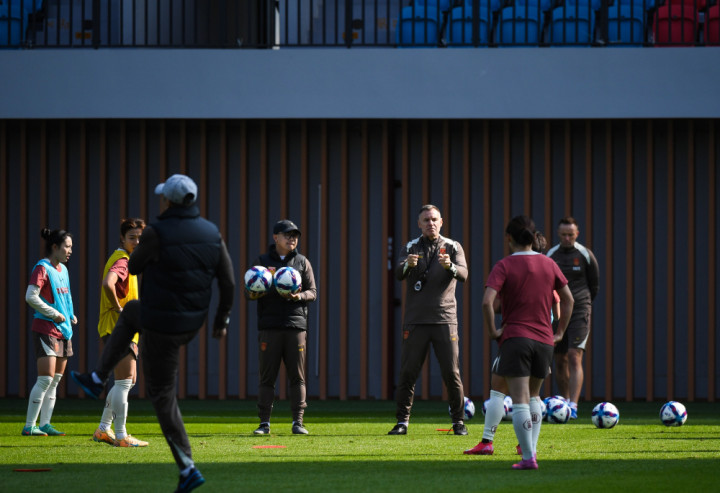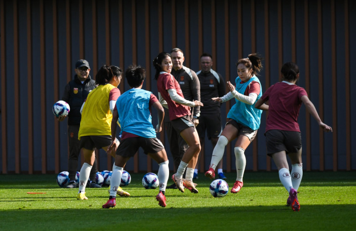 1月6日,中国女足主训诫安特·米利西奇(左五)在磨真金不怕火中指引队员。新华社记者毛念念倩摄