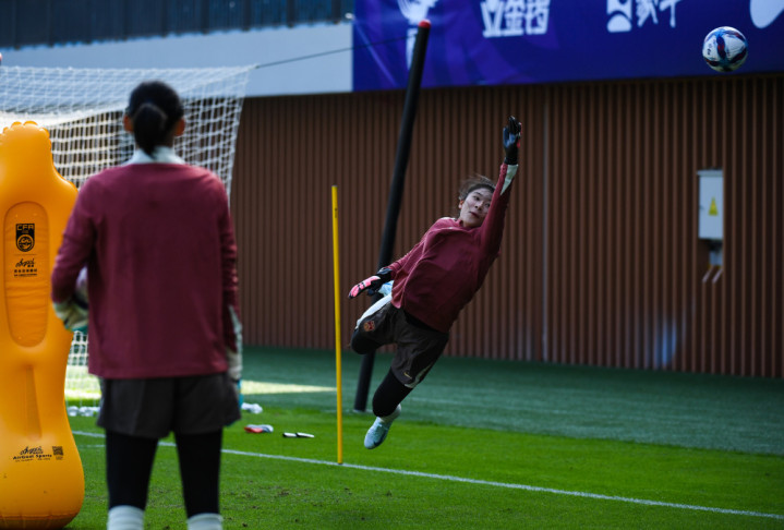 1月6日,中国女足守门员刘晨(右)在磨真金不怕火中。新华社记者毛念念倩摄