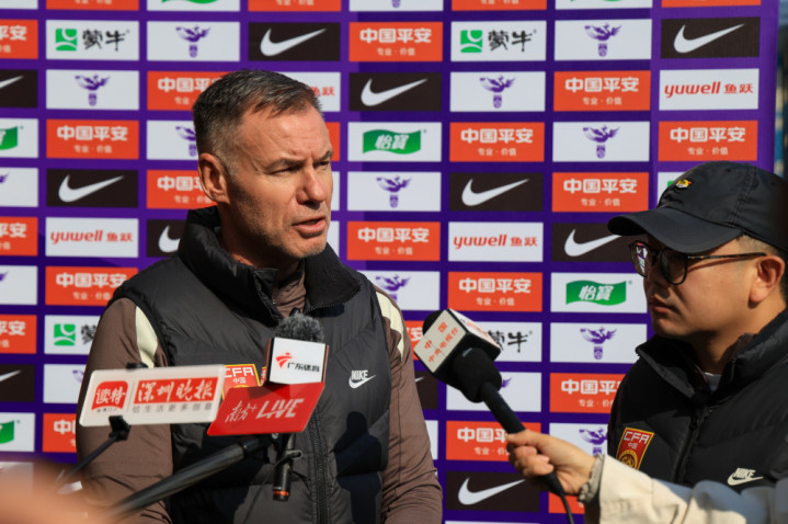 1月6日,中国女足主训诫安特·米利西奇在场边领受采访。新华社记者毛念念倩摄