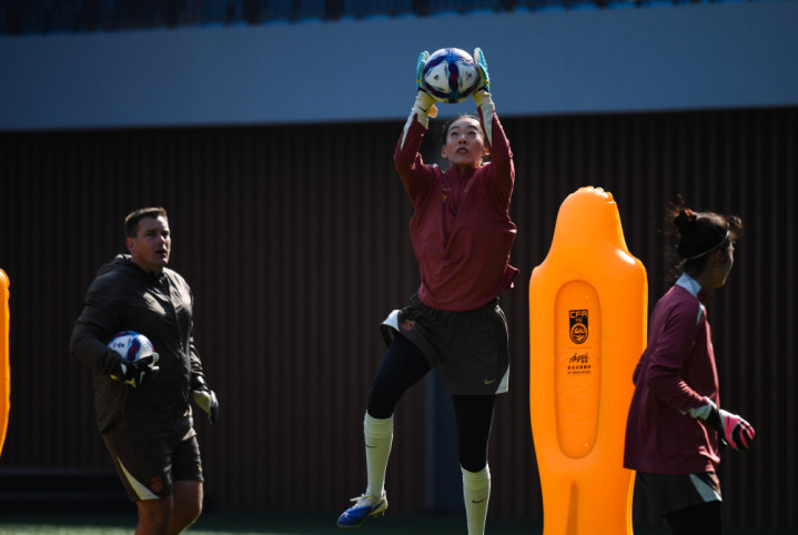 1月6日,中国女足守门员陈晨(中)在磨真金不怕火中。新华社记者毛念念倩摄
