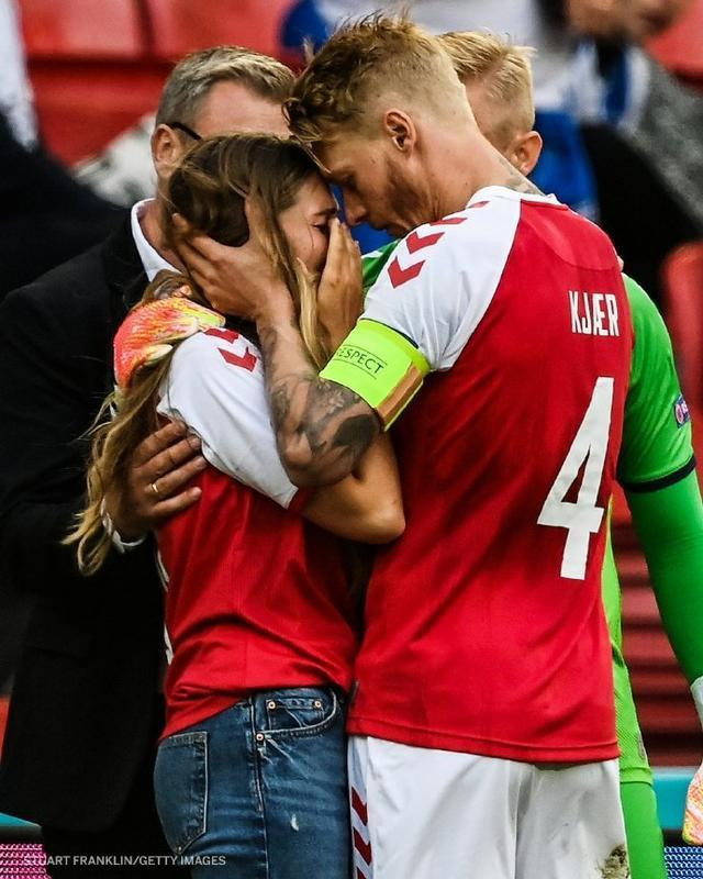 在队医进场后,克亚尔劝慰了埃里克森痛哭流涕的内助,之后克亚尔又指示球队重新回到比赛中。